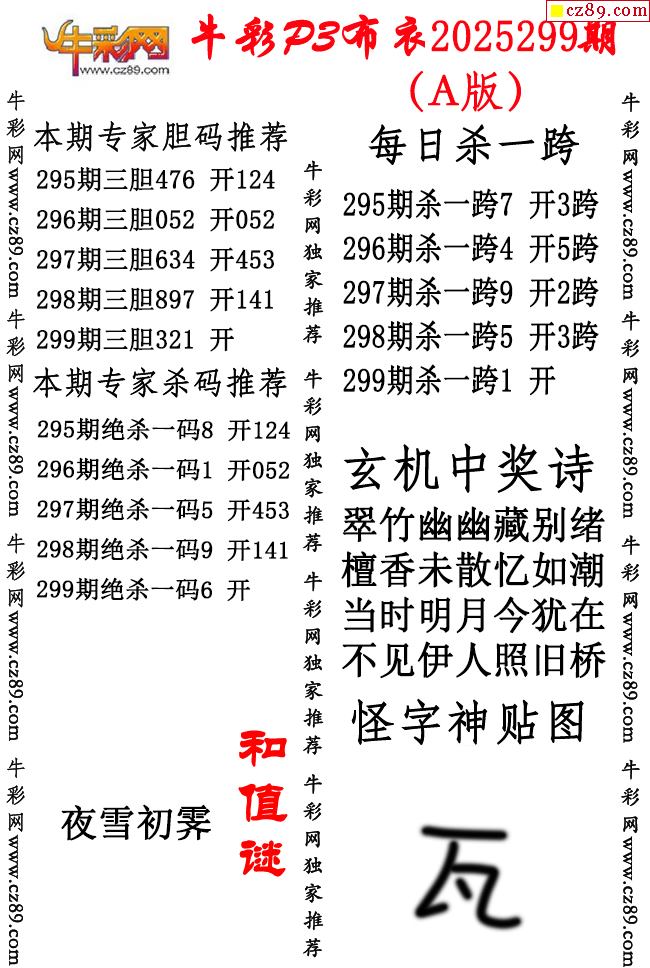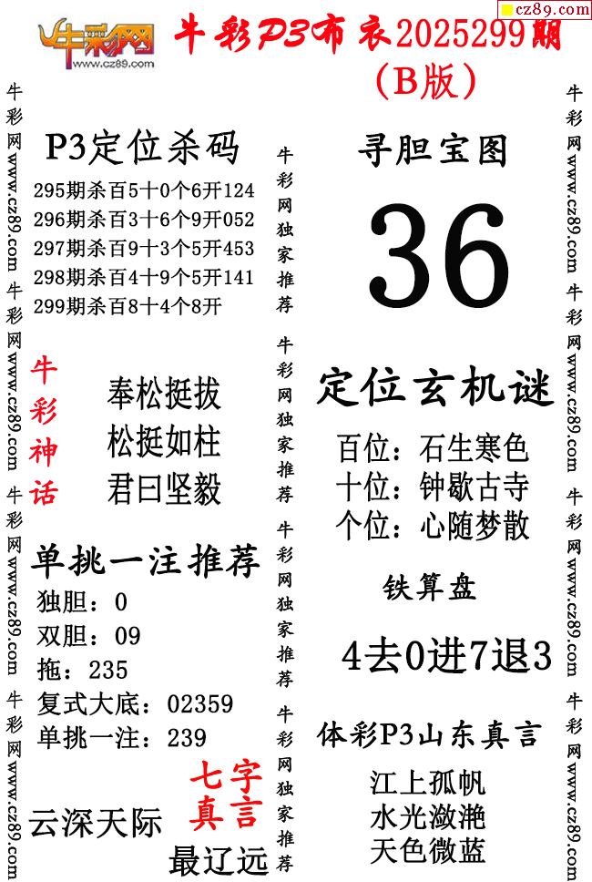 牛彩P3布衣25年299期AB版图谜(精华版)